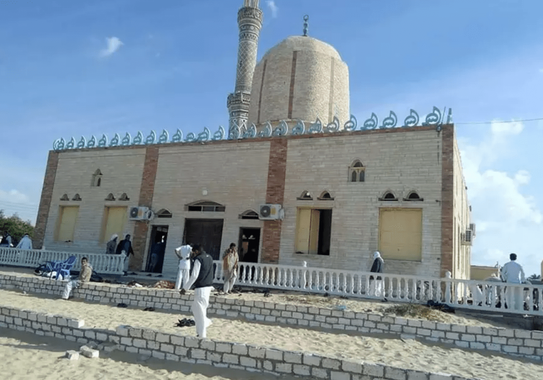 Οπλισμένοι άνοιξαν πυρ και πυροδότησαν βόμβα στο χωριό al-Rawda στο al-Areesh στο βόρειο Σινά κατά την προσευχή της Παρασκευής. Τουλάχιστον 109 άνθρωποι τραυματίστηκαν κατά την επίθεση, ανέφερε η αιγυπτιακή κρατική τηλεόραση.