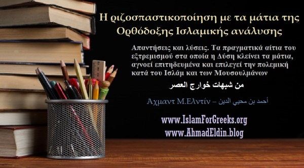 Η ριζοσπαστικοποίηση με τα μάτια της Ορθόδοξης Ισλαμικής ανάλυσης. Απαντήσεις και λύσεις. Τα πραγματικά αίτια του εξτρεμισμού στα οποία η Δύση κλείνει τα μάτια, αγνοεί επιτηδευμένα και επιλεγεί την πολεμική κατά του Ισλάμ και των Μουσουλμάνων. Συνέχεια ανάγνωσης «Η ριζοσπαστικοποίηση με τα μάτια της Ορθόδοξης Ισλαμικής ανάλυσης»