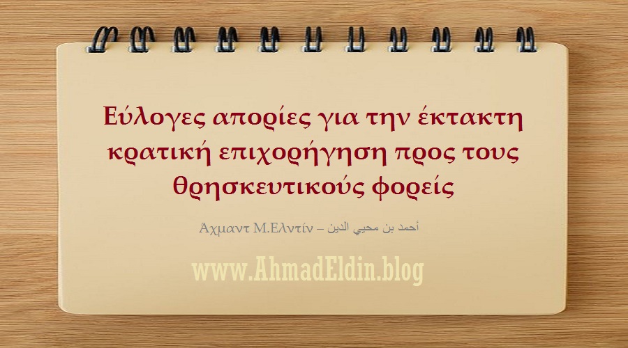 Μου δημιουργήθηκαν ορισμένες απορίες και ερωτήματα σχετικά με την έκτακτη κρατική επιχορήγηση προς τους θρησκευτικούς φορείς, ανάμεσα σε αυτούς (υποτίθεται) και οι Μουσουλμάνοι.