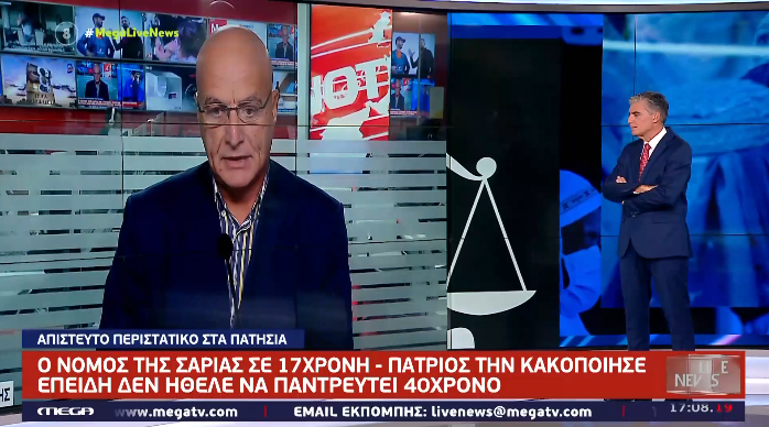 Ο δημοσιογράφος Βασίλης Λαμπρόπουλος ανέφερε ότι μια 17χρονη κοπέλα κακοποιήθηκε από τον πατριό της επειδή δεν ήθελε να παντρευτεί αυτόν που της υποδείκνυε. Την είδηση την παρουσίασε ως «εφαρμογή της Σαρία»: