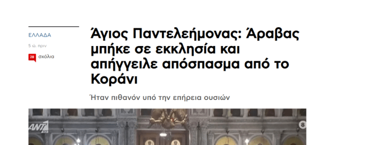 Η Ισλαμοφοβική δημοσιοκαφρίλα επανέρχεται και αυτή τη φορά επινοεί το εξής σενάριο: Ένας «αλλοδαπός» και φυσικά Μουσουλμάνος στο θρήσκευμα, εισβάλει σε Εκκλησία, αρπάζει το μικρόφωνο και απαγγέλλει στίχους του Κορανίου. Πως πιάστηκε στα πράσα το ελληνικό δημοσιογραφικό και πολιτικό σύστημα να κατασκευάζουν προβοκάτσια κατά των Μουσουλμάνων στην Ελλάδα.