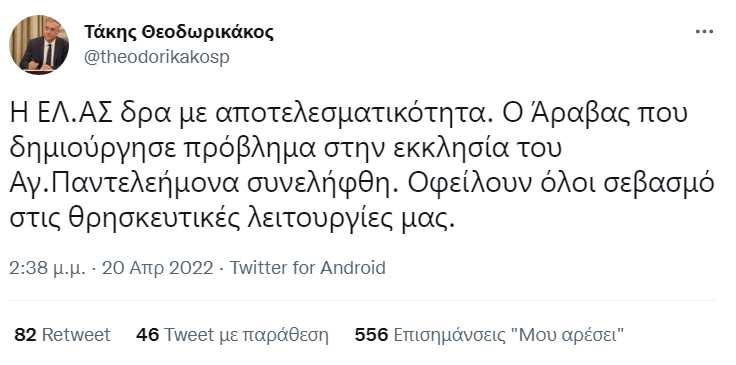 Το περιστατικό έλαβε χώρα το προηγούμενο Σάββατο, σύμφωνα με το Πρώτο Θέμα, και την προηγούμενη Παρασκευή (σύμφωνα με τον Μπογδάνο όπως θα δούμε παρακάτω). Και εδώ αρχίζει το ξεμπρόστιασμα τους. Και αναρωτιέσαι γιατί η είδηση βγήκε σήμερα (20/4/2022). Αυτό στη συνέχεια το κρατάς και περιμένεις την Χριστιανική εβδομάδα (Μ. Εβδομάδα) να το ρίξεις στην δημοσιότητα με ένα τόνο σάλτσα ψέματος (απαγγελία Κορανίου, Άραβας, Μουσουλμάνος κτλ) μόνο και μόνο να προκαλέσεις οργή. Πόσο απελπισμένη είσαι άραγε σαν πολιτεία και σαν κράτος οπού κατασκευάζεις προβοκάτσια για να αποπροσανατολίσεις;