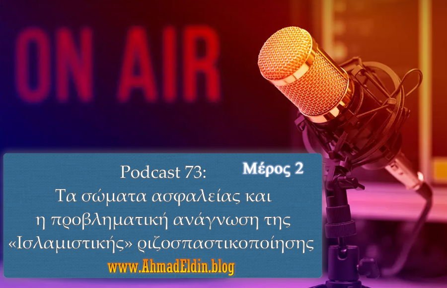 Podcast #73: Το δεύτερο και τελευταίο μέρος οπου ο Άχμαντ Μ.Ελντίν και ο Δημήτρης Παπαδόπουλος σχολιάζουν τα «εγχειρίδια» αντιμετώπισης της λεγόμενης Ισλαμιστικής ριζοσπαστικοποίησης και το πως βυθίζουν στην άγνοια τα σώματα ασφαλείας, τόσο ως προς τον εντοπισμό και την ανάγνωση του εξτρεμισμού όσο και γιαυτο που στέκεται ως πραγματική απειλή σε μια κοινωνία.