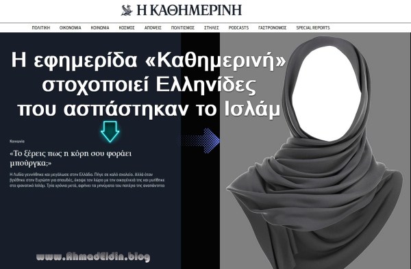 Σε μια περίοδο όπου όλο και περισσότερες γυναίκες στη Δύση επιλέγουν συνειδητά το Ισλάμ, τα κυρίαρχα ΜΜΕ δεν μπορούν να μείνουν απαθή. Η εφημερίδα «Καθημερινή» δημοσίευσε ένα εκτενές ρεπορτάζ, το οποίο επιχειρεί να μετατρέψει μια προσωπική, ώριμη και συνειδητή μεταστροφή στο Ισλάμ σε αφήγηση «ριζοσπαστικοποίησης». Όχι επειδή η κοπέλα έκανε κάτι επιλήψιμο, αλλά επειδή διέπραξε το “λάθος” να απορρίψει τη χρεοκοπημένη πνευματικά ταυτότητα της Δύσης. Το ερώτημα, ωστόσο, παραμένει: βασίζεται αυτή η ιστορία σε πραγματικά πρόσωπα και γεγονότα, ή αποτελεί μια σκόπιμη προσπάθεια στοχοποίησης και δαιμονοποίησης κάθε νέου ανθρώπου που επιλέγει να στραφεί προς το Ισλάμ; Συνέχεια ανάγνωσης «Η εφημερίδα «Καθημερινή» στοχοποιεί Ελληνίδες που ασπάστηκαν το Ισλάμ»