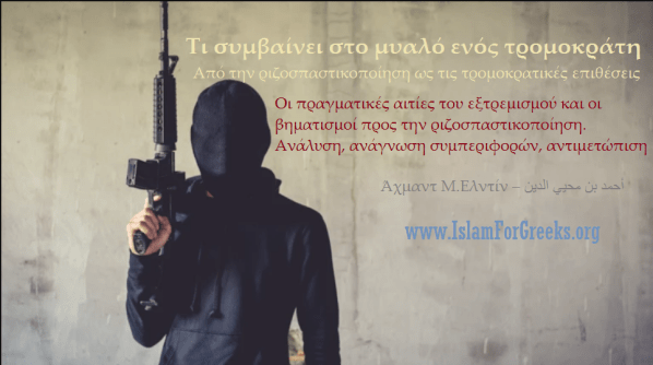 Στο μυαλό ενός τρομοκράτη: Οι πραγματικές αιτίες του εξτρεμισμού και οι βηματισμοί προς την ριζοσπαστικοποίηση. Ανάλυση, ανάγνωση συμπεριφορών, αντιμετώπιση. Τι οφείλουν να γνωρίζουν οι Μουσουλμάνοι και οι μη Μουσουλμάνοι. Αναδημοσιεύουμε την εκπομπή Eldin’s Journal #7 (24-1-2020) Συνέχεια ανάγνωσης «Τι συμβαίνει στο μυαλό ενός τρομοκράτη: Από την ριζοσπαστικοποίηση ως τις τρομοκρατικές επιθέσεις»